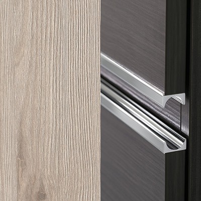 Eiche Dekor Flanelle Melamin mit Griffleiste chrom - M29