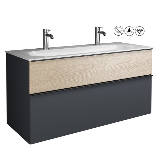 Burgbad Fiumo Set Mineralguss-Waschtisch inkl. Waschtischunterschrank(SFXM122)