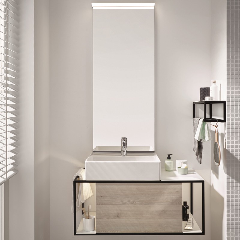 Burgbad Junit Keramik-Aufsatzwaschtisch inkl. Waschtischunterschrank 900 mit LED-Beleuchtung (SFKQ090)