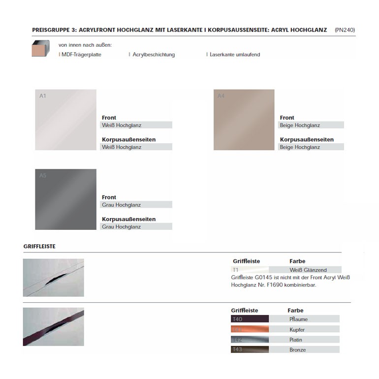 T0000 - Standartausführung: Front- / Korpusfarbe