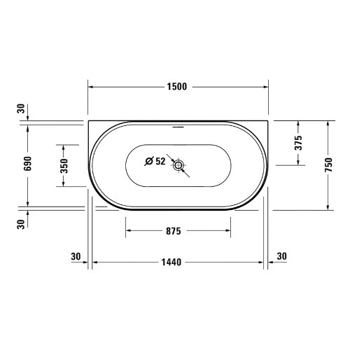 Duravit DuraSenja Vorwand Badewanne,Oval,1500x750x585mm, weiß, Acryl (700578000000000)