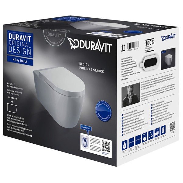Duravit ME by Starck Wand-Tiefspül-WC mit WC-Sitz, HygieneFlush, rimless, weiß