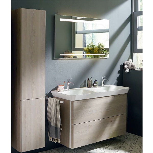 Ob Sie sich für einen Spiegel mit einer vertikalen oder horizontalen Beleuchtung entscheiden – Ihr Bad wird durch die frei beweglichen LED-Leuchten zu einer Besonderheit. Außerdem können Sie die Burgbad Iveo Waschtischschränke mit der vertikalen LED-Beleuchtung an der Griffleiste dazu nutzen, um in Ihrem Bad besondere Akzente zu setzen.