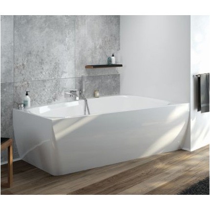 Freistehende Badewanne iSensi aus Acryl mit fester Schürze (Monolith) inkl. vormontiertem Untergestell und Überlaufgarnitur (optional wählbar)