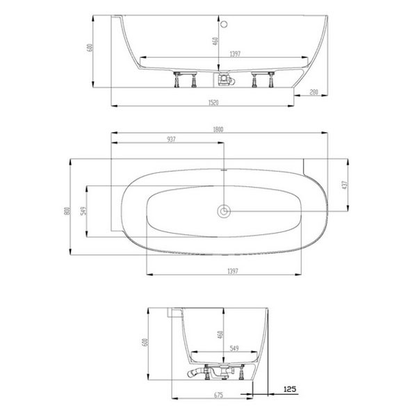 HOESCH Badewanne LaBrillante 1800x800 Ecke Rechts Weiß Glanz, mit Überlauf freistehend aus
