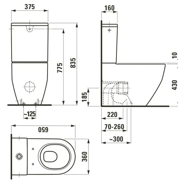 LAUFEN Stand-Tiefspül-WC für Spülkasten, Laufen Pro, spülrandlos360x650