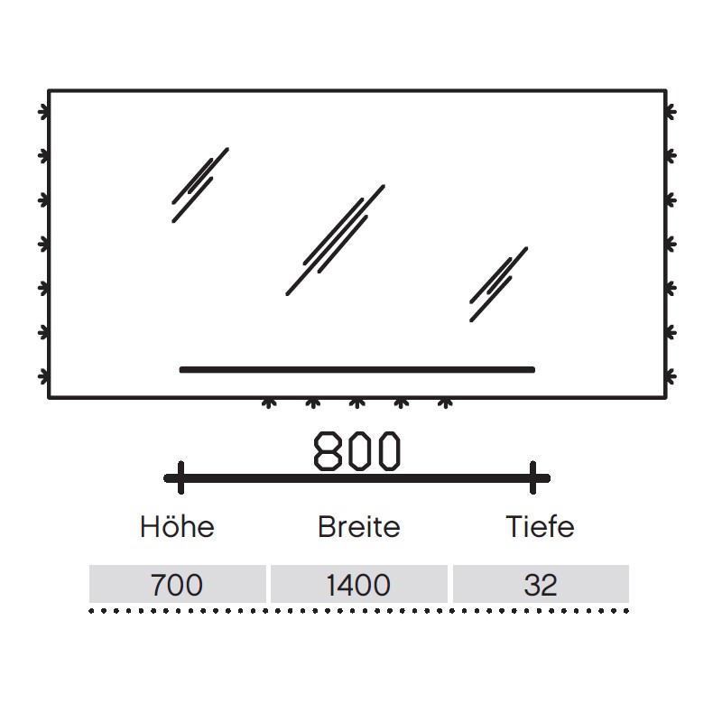 - mit Touchschalter unten mittig und Glasablageboden,