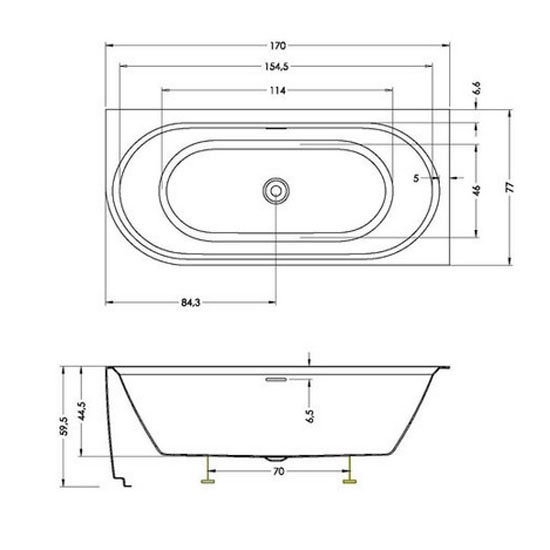 Teilweise freistehend (mit Rückseite und einer kurze Seite an der Wand), doppelwandige Badewanne