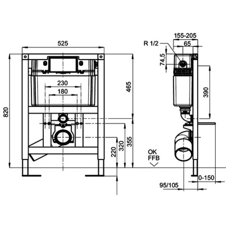 -Schwitzwasserisolierter SANIT UP-Spülkasten (CC-150-S-UO-2V-2C) mit 2-Mengenspülung (9/3 L oder 6/3 L) oder Start/Stopp-Spülung