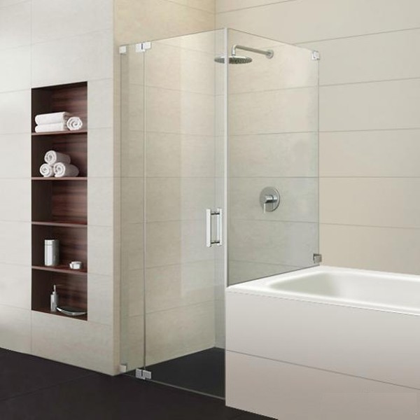 Sprinz Achat R Plus Schwingtür mit Festfeld und Seitenwand verkürzt ESG kristall hell / chrom 90x 90x 200