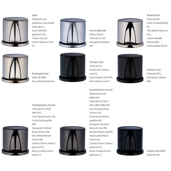 Oberflächen serienmäßig in Chrom oder Schwarz matt