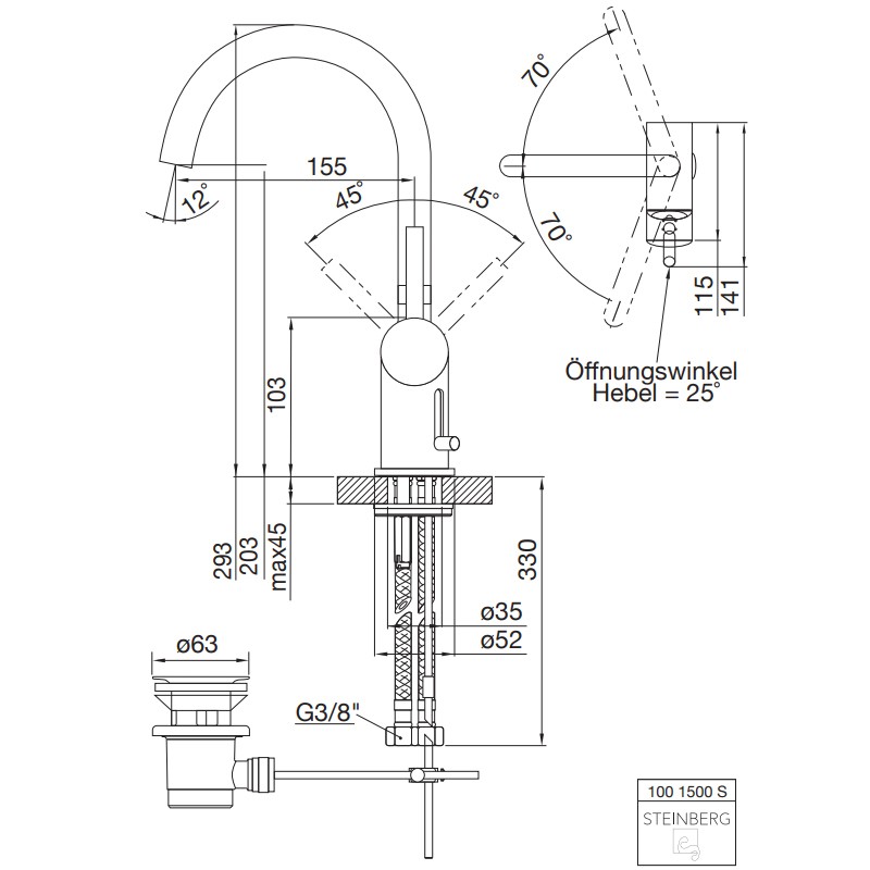 Steinberg Serie 100 S Einhebelmischer mit Zugstangengarnitur, matt schwarz (100 1500 S)