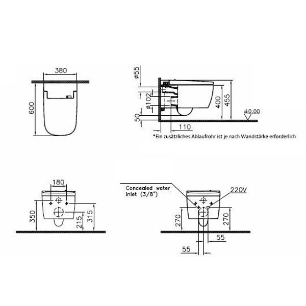 - inklusive abnehmbarem und beheiztem WC-Sitz (Thermoplast) mit Absenkautomatik und Sitztemperaturregelung